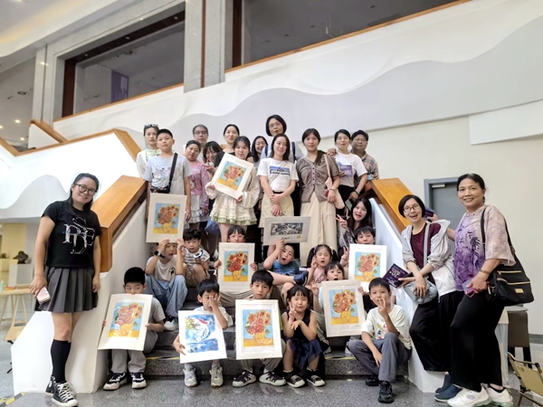 在环太湖艺术城内,亲子家庭漫步法国版画艺术展,深入探索法国版画历史、技法和文化语境,体验沉浸式美育。在讲解员的带领下,孩子们听得格外认真,并积极参与互动抢答。最令人期待的版画和手工制作环节,家长与孩子携手构思、刻版、印制,将创意化为专属艺术作品,在协作中深化亲情,让艺术创作成为亲子成长的生动课堂。